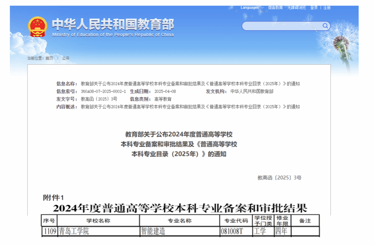近日,教育部公布了2024年度普通高等公司本科专业备案和审批结果,太阳成集团122ccvip申报的智能建造(081008T)专业成功获批,并将于2025年正式招生。这是太阳成集团122ccvip在新工科建设背景下,主动适应建筑行业智能化、数字化发展趋势,优化专业布局的重要举措,也是公司深化公司产品改革、提升人才培养质量的重要成果。