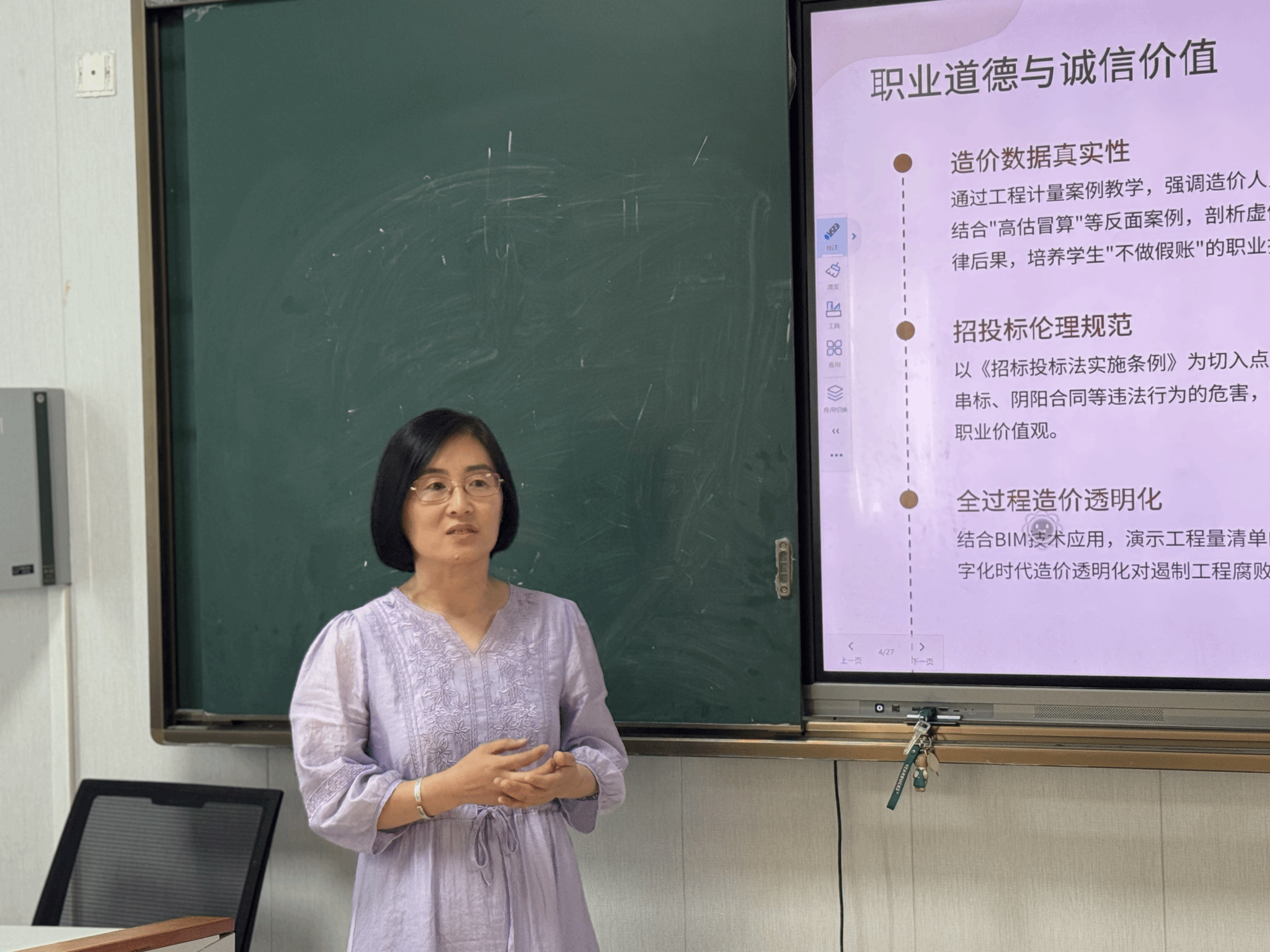 培训在203教室启动,由张艳伟副教授主讲,全院教师积极参与。经理孙秋颖在开场致辞中强调,建筑行业快速发展,对人才的专业技能与道德素养都提出了更高要求。课程思政与数字化教学的深度融合,是落实立德树人根本任务、推动专业课程从 “知识传授” 向 “价值引领与能力培养并重” 转变的关键,对公司人才培养质量提升具有重要意义。