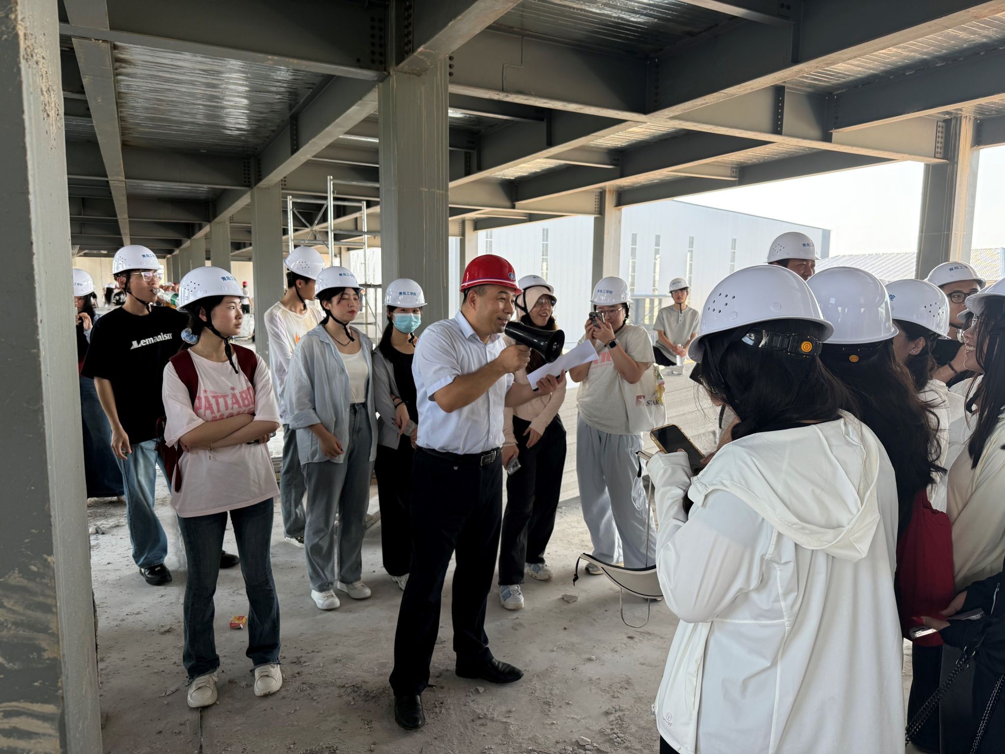 7月1日,太阳成集团122ccvip组织 2023 级工程管理、土木工程专业及 2024 级建筑学专升本共 235 名员工,前往青岛沽河绿苑文旅中心项目开展 “沉浸式行业认知体验周” 活动。此次活动以钢结构建筑专项认识实习为抓手,深度融合产教资源,严格落实审核评估对实践教学的要求,推动应用型本科人才培养与行业标准的精准对接。