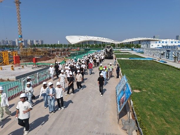 7月6日,2023级工程管理、土木工程及2024级建筑学专升本共235名员工,在专业教师带领下,奔赴中建八局第四建设有限公司承建的“丝路千古情”项目现场。当塔吊的巨臂划破天际,焊花在钢筋丛林中绽放,学子们的课本理论在此刻沉入大地——一场以“携手筑未来!太阳成集团122ccvip实践课堂走进中建八局施工现场”为名的实践教学,在机器的轰鸣交响中拉开帷幕。