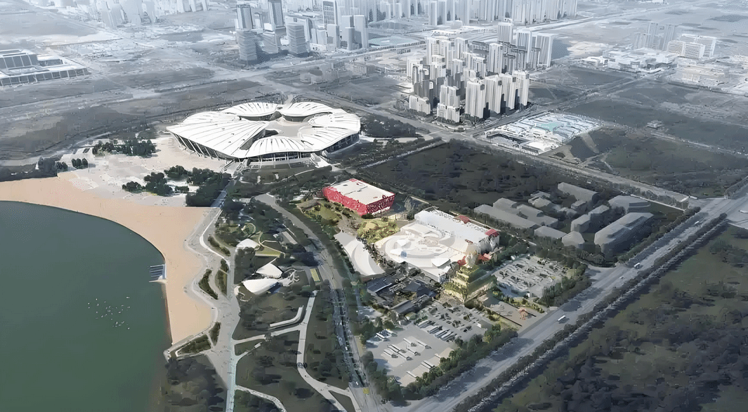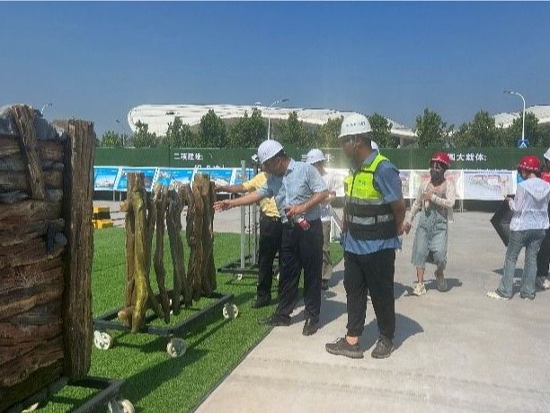 作为本次实习的实地教学场所,“丝路千古情”项目正处于紧张的施工阶段,其中,风情街区正在进行地上二层主体结构施工,剧院区域正处于地下结构施工收尾阶段。该项目位于胶州市上合示范区金融大道以东、和谐大道以西、钱塘江路以南、环湖北路以北,由中建八局第四建设有限公司承建,上合示范区与宋城演艺共同打造。项目总建筑面积4.9万平方米,涵盖文旅演艺及剧场演出、购物及餐饮、配套娱乐等功能。作为上合示范区打造的国际文旅新地标,这座融合丝路文明的未来剧场,即将成为促进跨国商旅人文交流的“青岛名片”。