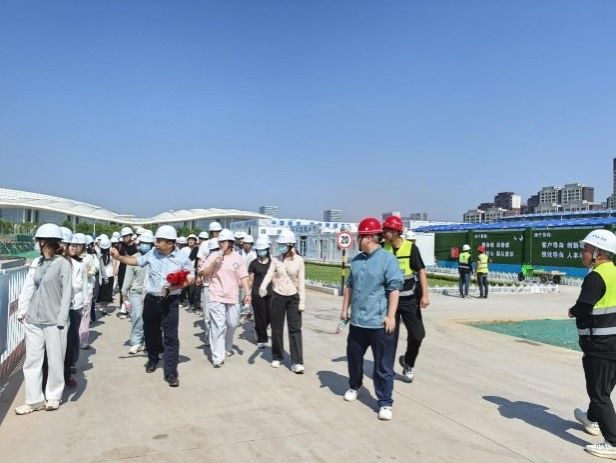 本次实习活动依旧采用“理论讲解 - 实地观摩 - 互动研讨”的三维教学模式,精准锚定《施工技术与组织》《项目管理》核心课程目标。在现场,专业教师以实时作业场景为鲜活教具,推动项目实践与书本理论深度交融,让项目管理精髓与施工关键要点直抵学习核心。项目技术负责人立足工程现场,详细讲解了项目概况、施工进展及关键技术,以生动案例为书本理论注入鲜活实践注解,让抽象的工程知识落地为可触可感的实践经验。现场学习氛围浓厚。这种近距离接触施工一线的学习方式,不仅激发了员工们的学习热情和创新思维,更让他们深刻认识到理论知识与实际施工的紧密联系。